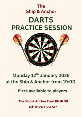 Revive your Darts Skills in 2026 Come and join our first darts practice session on Monday 12th January 2026 at the Ship & Anchor, Ford starting from 19.00.After a…