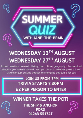 SHIP & ANCHOR QUIZ NIGHT – 13th August 2025